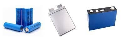 Nous rencontrons trois types de cellules dans les batteries solaires lithium : les cellules de type « poche » (pouch-cell en anglais), à feuillet, les cellules dites « prismatiques », rectangulaires, et les cellules cylindriques :